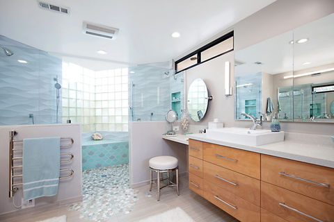 Irregular Angles Shine in Custom Coastal Master Bath Retreat